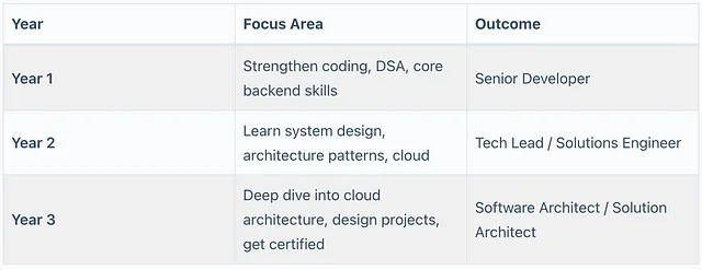 Para convertirte en Arquitecto de Software , céntrate primero en la amplitud (múltiples tecnologías) , luego en la profundidad en diseño y la nube , y finalmente en liderazgo y toma de decisiones .