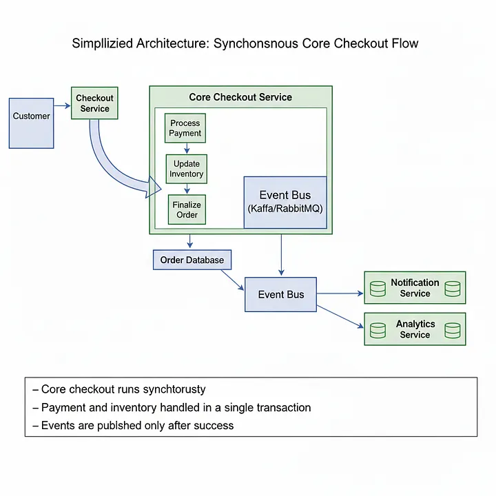 Se seguían utilizando eventos, pero solo para efectos secundarios como análisis y notificaciones. El flujo principal del negocio seguía siendo lineal y fácil de entender.
