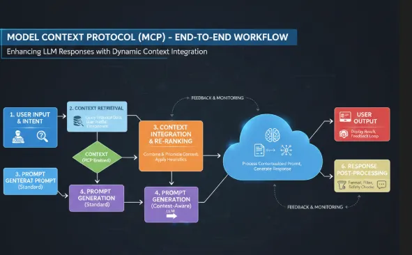 Un protocolo que define cómo los modelos de IA pueden comunicarse con contextos externos (como API, bases de datos, repositorios de código o complementos). Ayuda a los sistemas de IA a obtener la información adecuada en el momento adecuado, en lugar de depender únicamente de su preentrenamiento.