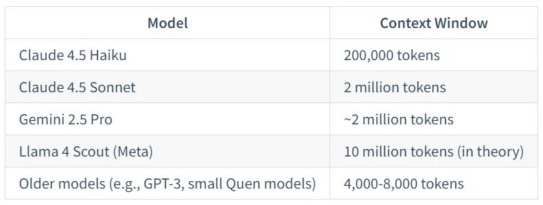 Cada LLM tiene un límite de ventana de contexto codificado, definido por su arquitectura. Por ejemplo:
