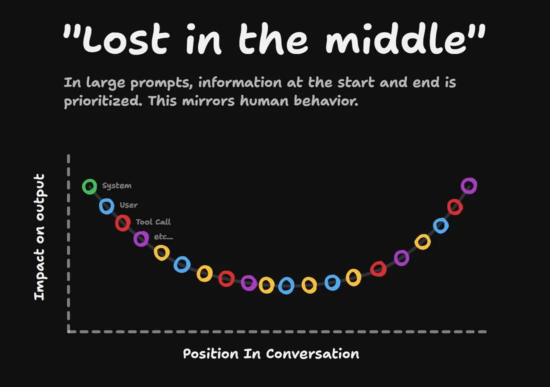 Es similar a cómo los seres humanos recuerdan mejor lo que vino primero y lo que vino último, el sesgo de primacía y recencia, mientras que los detalles del medio se desvanecen.
