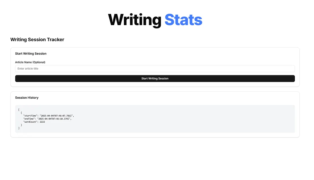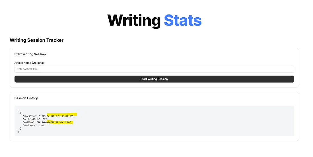 Introduzco los detalles de mis sesiones de escritura y debajo obtengo un campo JSON.