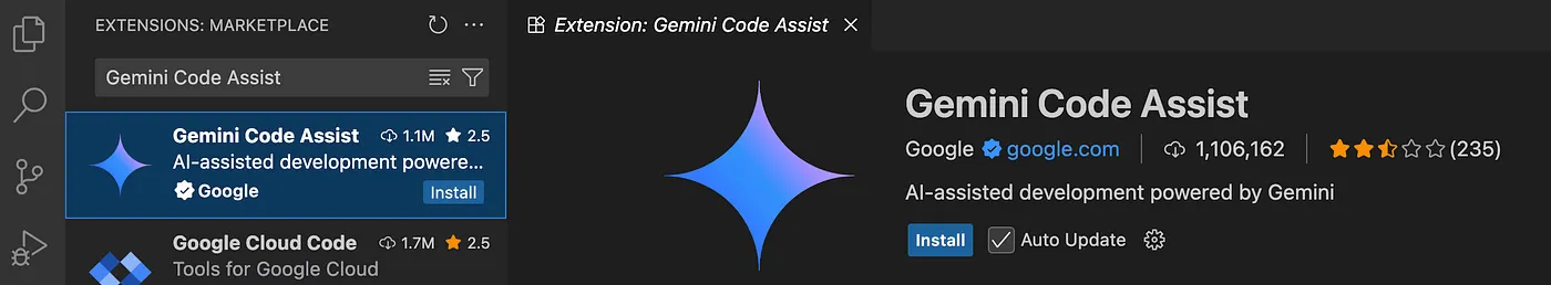 - Instala Gemini Code Assist desde el mercado de VS Code.